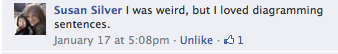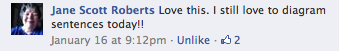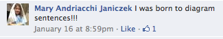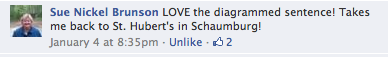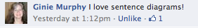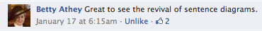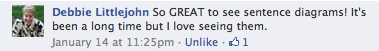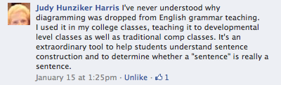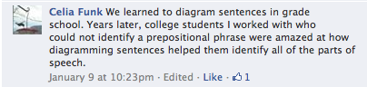 Sentence diagramming has been getting some love from our Facebook followers. I'm including some of their comments here as a buffer before the answer section. ![]() ![]() ![]() ![]() ![]() |